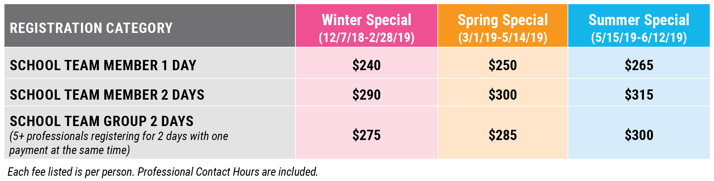 School Team Professionals include employees of PreK-12 Public, Private, or Religious Schools.